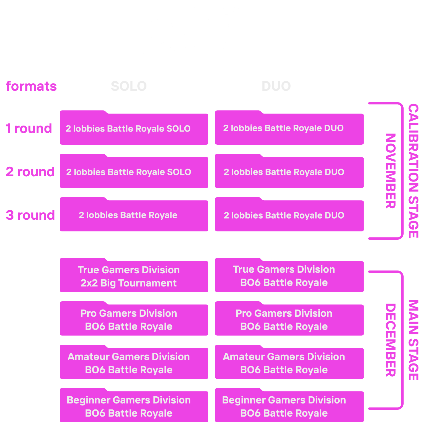To participate in the league, you need to purchase a Battle Pass for the relevant discipline and format. This can be done online on our website or offline at our network of computer clubs. After purchasing the Battle Pass, you will receive an email with login details for the tournament platform. Access to the tournament platform will be provided by mid-October.